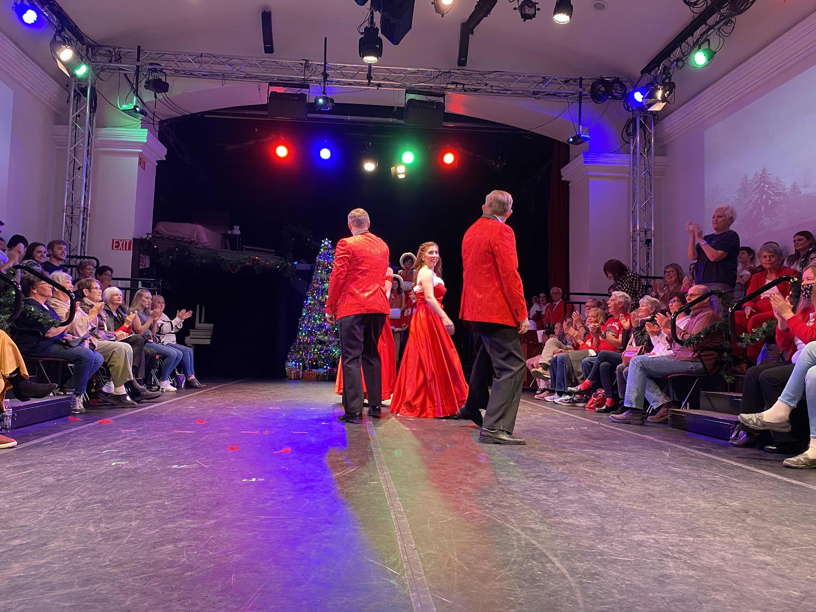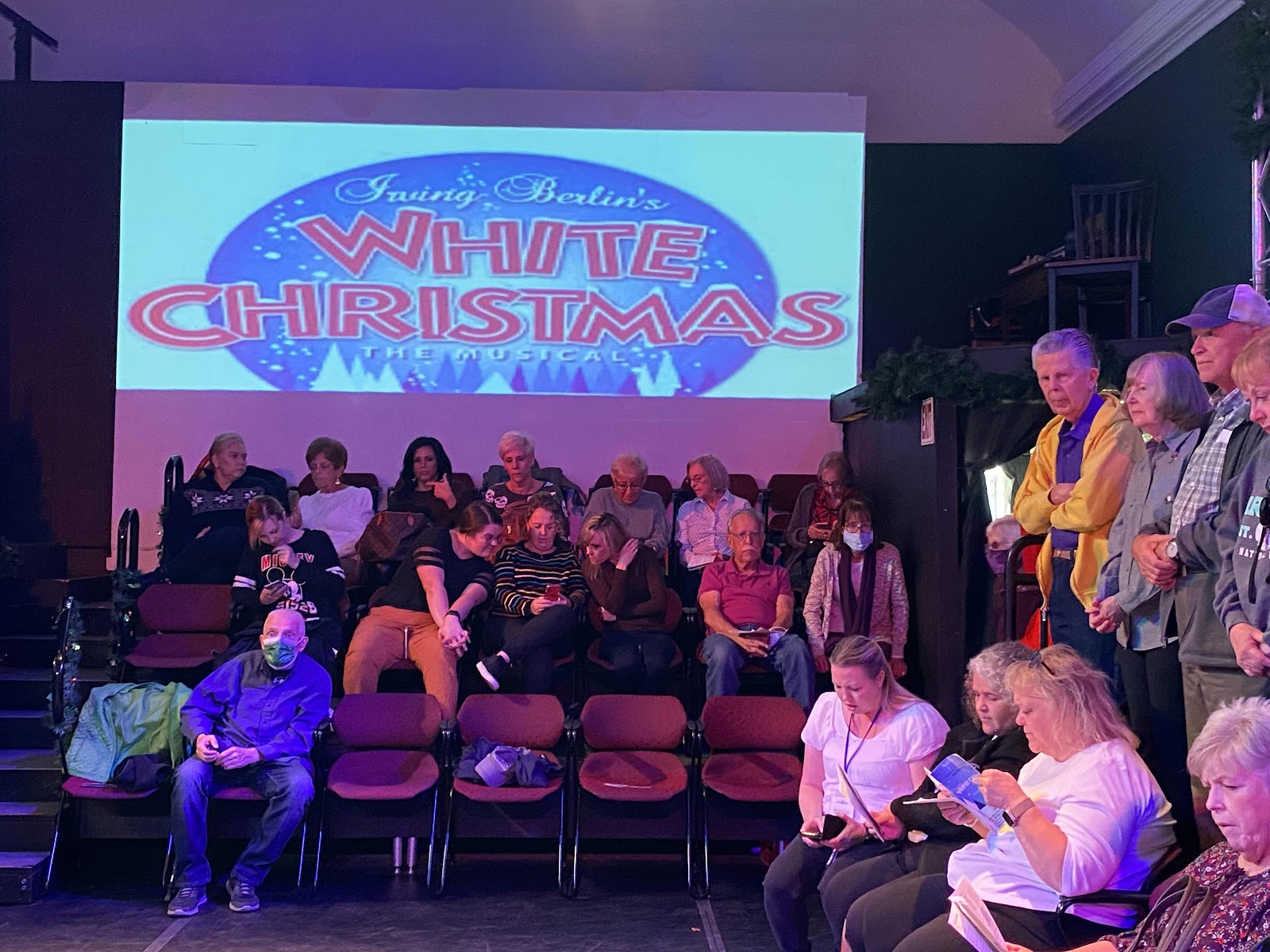From left to right, Betty Haynes, Haley-Shea Benoit. (Rosemary Clooney), Bob Wallace, BJ Cox, (Bing Crosby), Phil Davis, Tim Merkley, (Danny Kaye), Judy Haynes, Tamera Merkley, (Vera-Ellen).