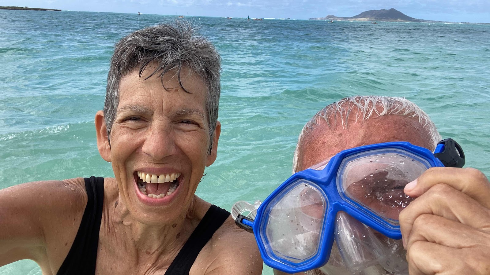 Tour guides getting ready to duck under a wave.